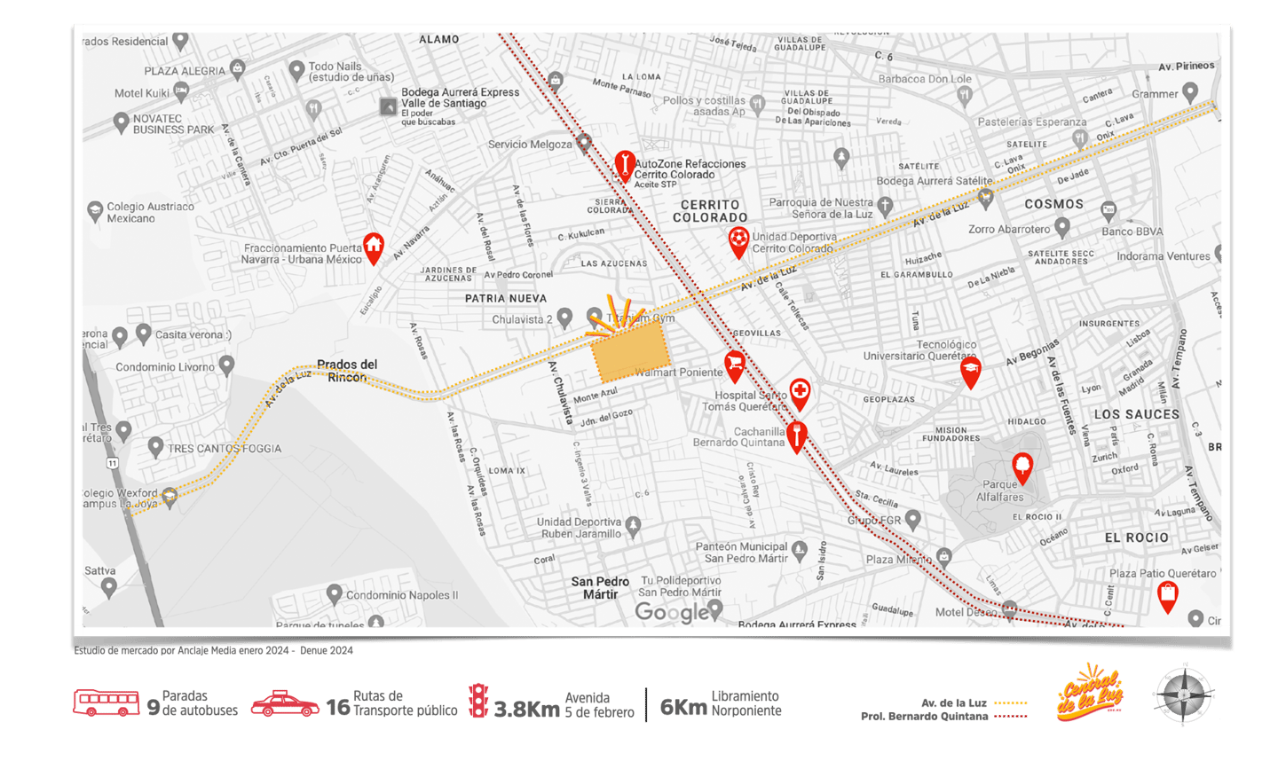 Somos un macroproyecto con una propuesta integral de comercio, abasto y experiencia urbana que se construye sobre Av. de la Luz, uno de los corredores con más movimiento de toda la ciudad de Querétaro.